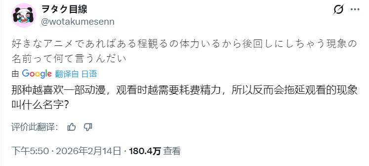 最近,日本网友就在讨论一个非常有趣的现象:“越喜欢的动画,反而越需要体力去看,所以越容易一直拖着不看。
